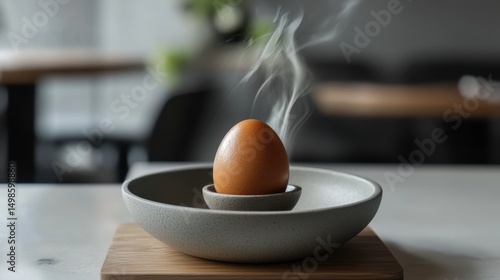 Freshly Cooked Egg in a Modern Bowl with Steam Rising Up