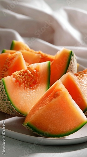 Freshly Cut Cantaloupe on a White Plate Displaying a Juicy Summer Treat