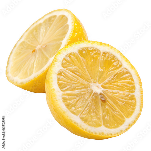 Freshly cut lemon halves isolated on transparent background