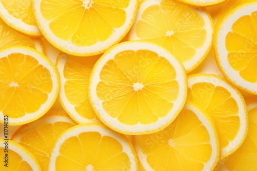 Freshly cut lemon slices arranged in a repeating pattern, showcasing the bright yellow pulp and textured peel.