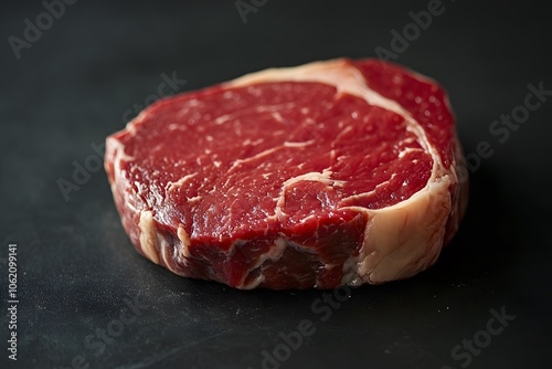 Freshly Cut Ribeye Steak on a Dark Background, High-Quality Culinary Photography