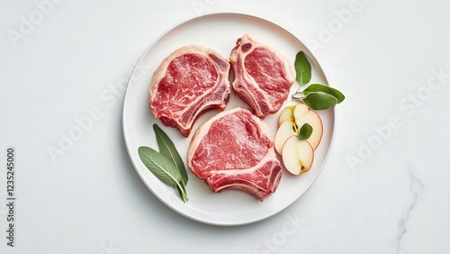 Freshly Cut Ribeye Steak with Herbs and Apple Slices
