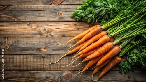 Freshly harvested carrots and parsley on a rustic wooden table, parsley, harvest