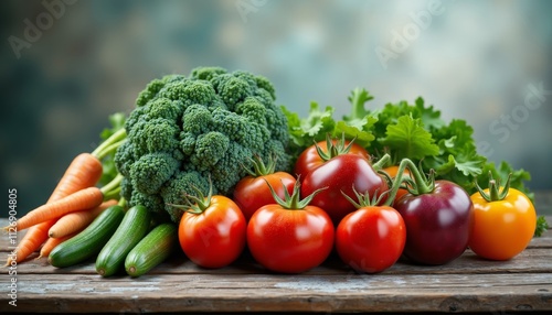 Freshly Harvested Colorful Vegetables Arranged on Rustic Table