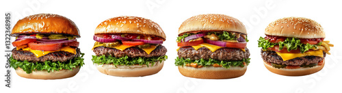 Freshly Made Juicy Burgers with Toppings Served on a Black Background, PNG bundle collection, Isolated on Transparent Background
