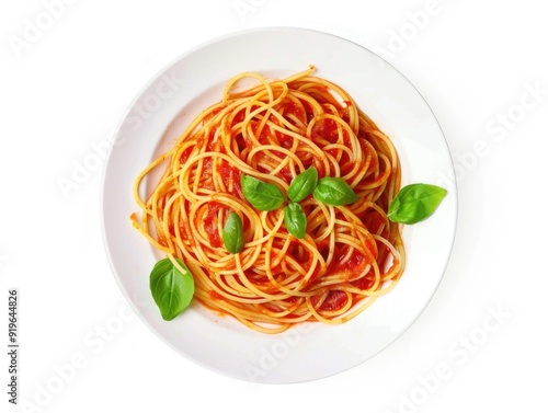 Freshly made spaghetti with red tomato sauce and basil garnish, served on a white plate.