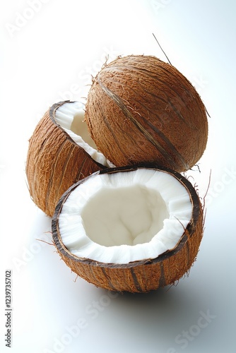 Freshly Opened Coconuts A Tropical Delight of Creamy White Flesh and Brown Husk.