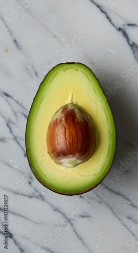 Freshly Sliced Avocado: A vibrant halved avocado with a smooth texture, showcasing its rich, creamy flesh, resting against a beautiful natural stone.