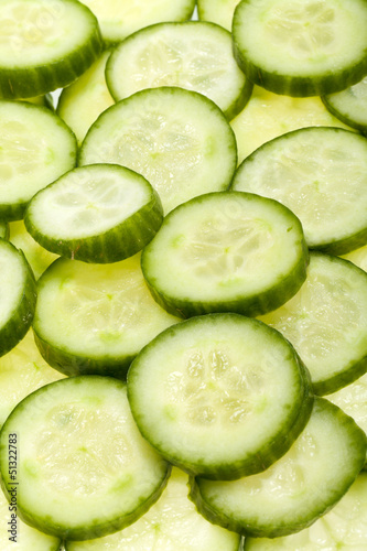 Freshly sliced cucumber isolated on white background