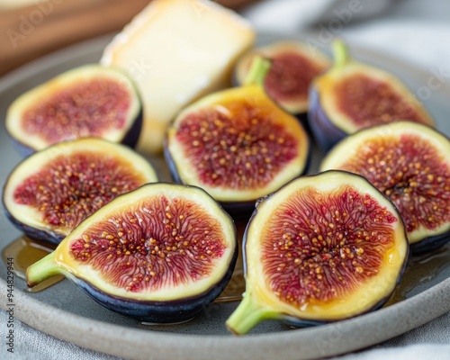 Freshly sliced figs arranged on a plate, showcasing their vibrant colors and unique texture, perfect for culinary presentations.