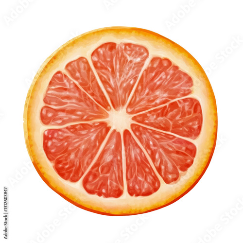 Freshly sliced grapefruit citrus fruit on transparent background showcasing vibrant inner segments and texture details, Grapefruit citrus fruit isolated on trransparent