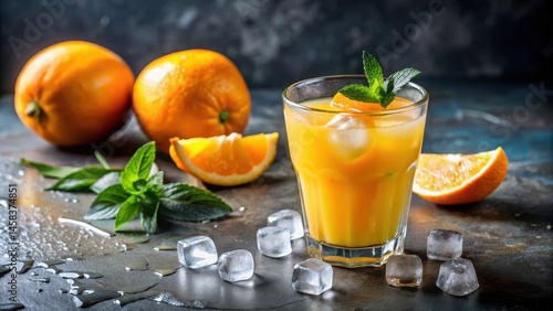 Freshly squeezed orange juice in a clear glass with ice cubes , summer, liquid, summer, liquid, transparent , health