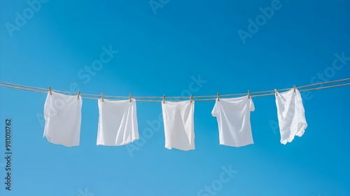 Freshly Washed Clothes Hanging on Clothesline Under Blue Sky