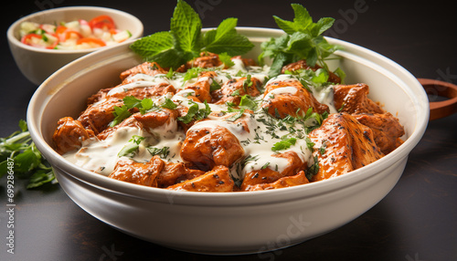 Freshness and flavor in a healthy vegetarian homemade meal generated by AI