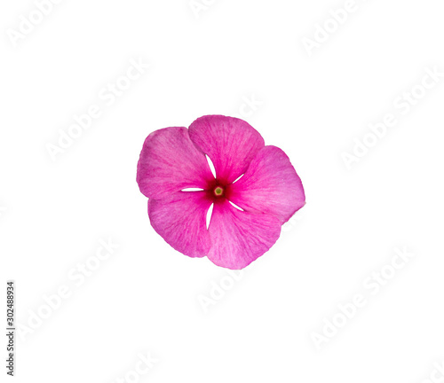 Freshness pink or purple of Periwinkle bloom isolated on white background. Single beautiful flower in closeup