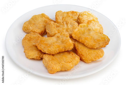 Fried chicken nugget isolated on white background, Fried nugget on white With clipping path.