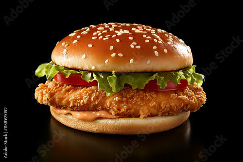 fried chicken sandwich on a black background