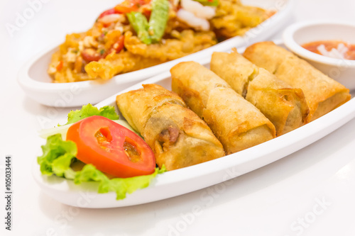 Fried Chinese Traditional Spring rolls food isolated on white ba