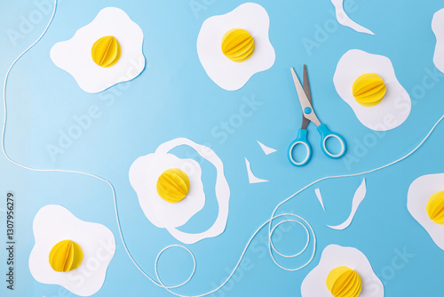 fried egg garland, DIY, easy kids origami craft, food themed activity, top view