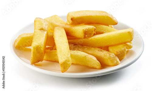 fried potatoes on white background