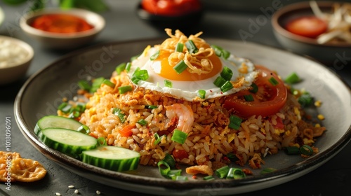 Fried Rice with Fried Egg and Shrimp