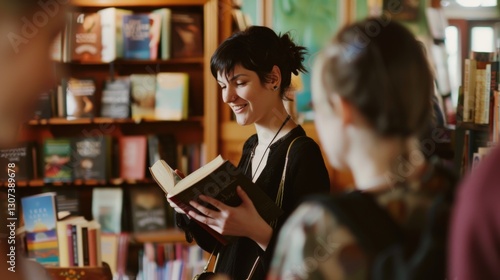 Friendly Bookshop Owner Offering Personal Recommendations in Cozy Setting