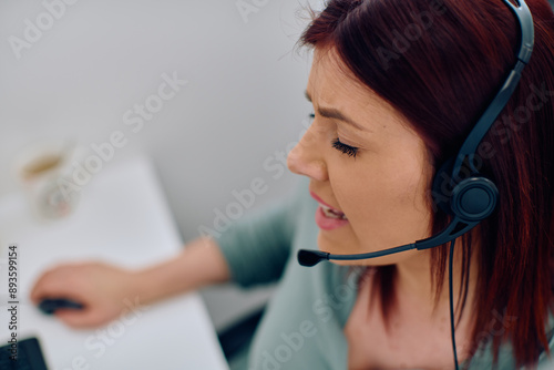 Friendly Call Center Agent Answering Incoming Calls with Headset Providing Remote Customer Service.