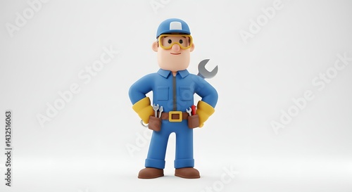 Friendly Cartoon Mechanic 3D Render of a Happy Plumber, Repairman, or Handyman with Tools