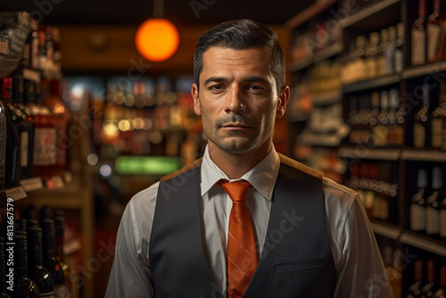 Friendly experienced supermarket store department worker professional at workplace Generative AI illustration