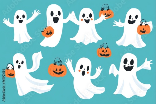 Friendly Ghosts Holding Jack-O-Lantern Pumpkins