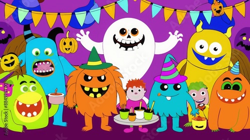 Friendly Monsters and Happy Ghosts at a Fun Halloween Party
