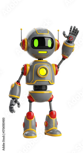 Friendly Robot Character Waving Hello Isolated on White Background for Commercial Use