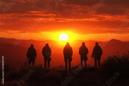 Friends at Sunset Mountains Adventure with Silhouettes and Shadows