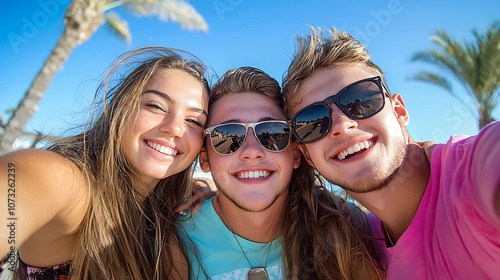 Friends capture joyful moments together under the sun at the beach