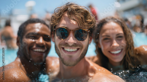 Friends enjoying a fun summer day in a swimming pool