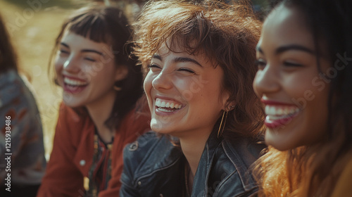 Friends enjoying a sunny day outdoors with laughter and smiles at a gathering