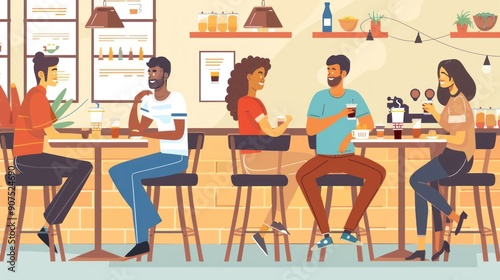 Friends enjoying drinks and conversation at a cafe.