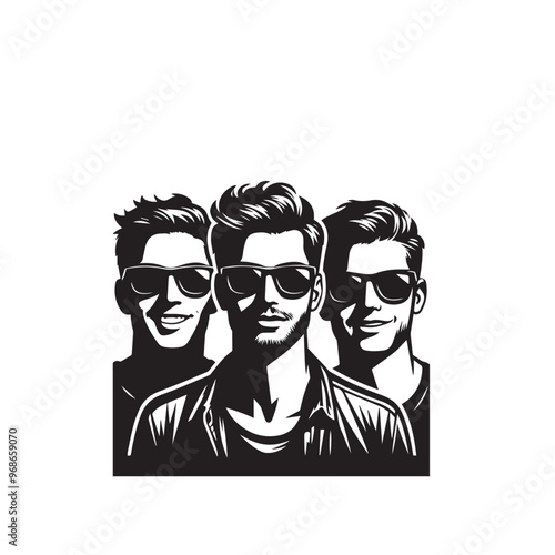 Friends group silhouette. Friendship day concept. Friends enjoying vector silhouette.