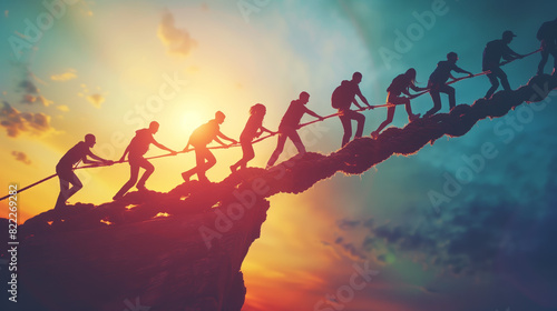 Friends participating in team work sports or group activities, united in pursuit of a common goal, illustrating camaraderie and collaboration as they support each other to reach new heights.