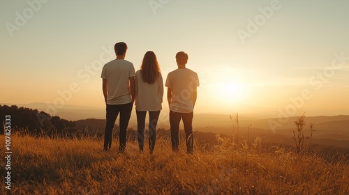 Friends Watching Sunset in Scenic Nature Setting