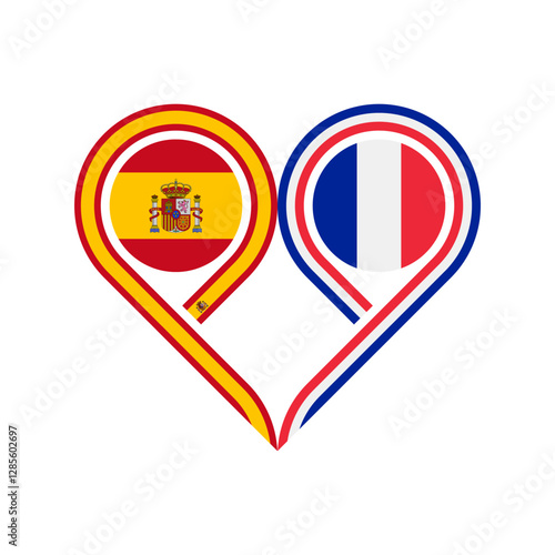 friendship concept. heart symbol icon of spain and france flags. vector illustration isolated on white background