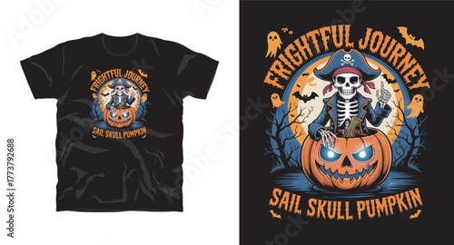 Frightful Journey Skull Pirate Vector Graphic Halloween T-Shirt Design