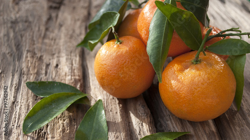 Frische Mandarinen, Clementinen auf Treibholz / Holzbrett