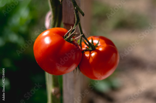 frische rote selbstgezogene Tomaten im Garten an einen Sonnigen Sommertag