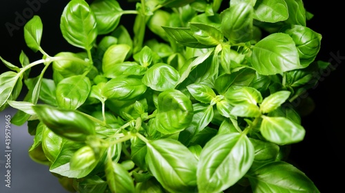 Frischer Basilikum vor einem dunklen Hintergrund