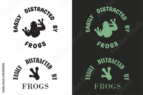 Frogs lover and easily distracted by frogs lettering quote sticker set. Groovy retro design. Aesthetic vector bundle pack for print shirt design