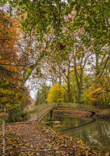 Frondaison d'automne dans le parc du château de Pont-de-Veyle, Ain, France