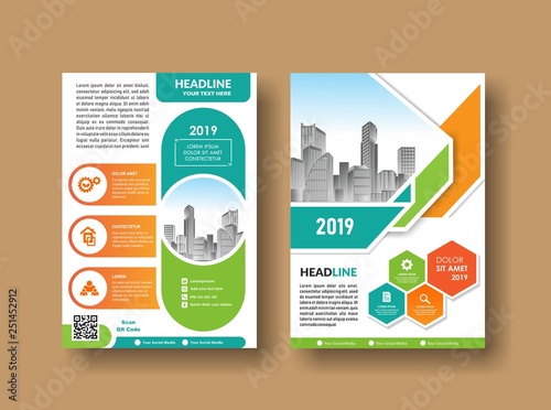 Front and back cover of a modern business brochure layout or flyer template, poster, magazine, annual report, book, booklet with red circle and gray design. Size A4