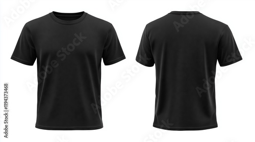 Front and back of a black t-shirt. All set for your design template mockup. Full depth of field, isolated on white background