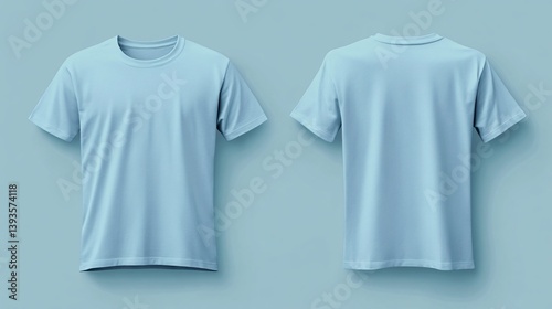 Front and Back Views of a Light Sky Blue T-Shirt on Neutral Background